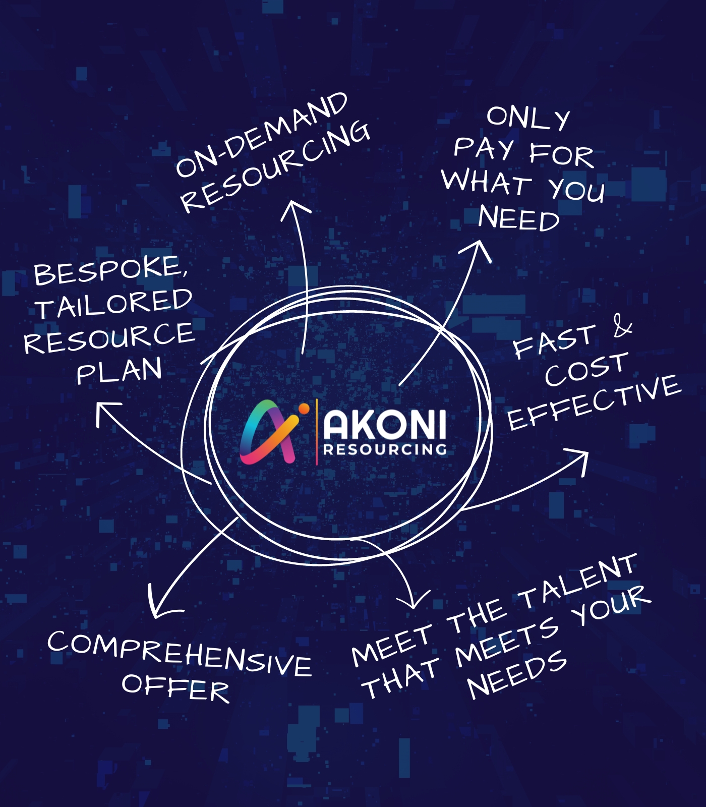 At Akoni Technologies, we work with a customer-first approach to IT services and solutions, so we can truly help our clients across the full spectrum of IT – including, but not limited to – on-demand resourcing.
